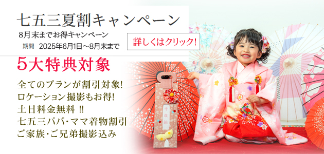 フォトスタジオ「マリエフルーリィ」では、七五三の特別キャンペーンを8月末まで実施中です!この期間限定で、通常は追加料金となる土日の撮影がなんと無料!さらに、全プランが特別割引となっており、人気のロケーション撮影にも嬉しい割引が適用されます。七五三の大切な記念日を、よりお得に、そして美しく残すチャンスです。